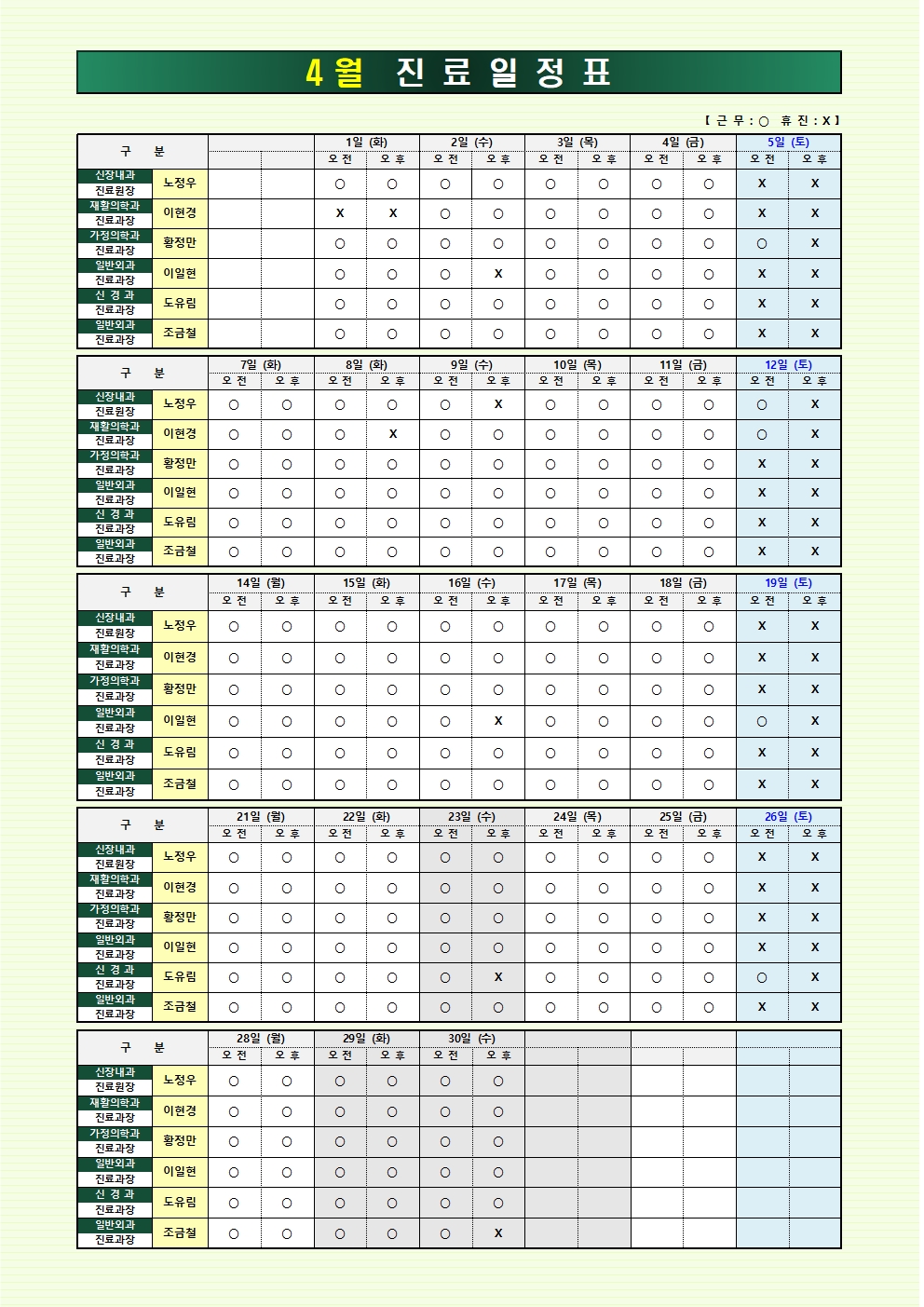 제목: 2025년 4월 진료시간표