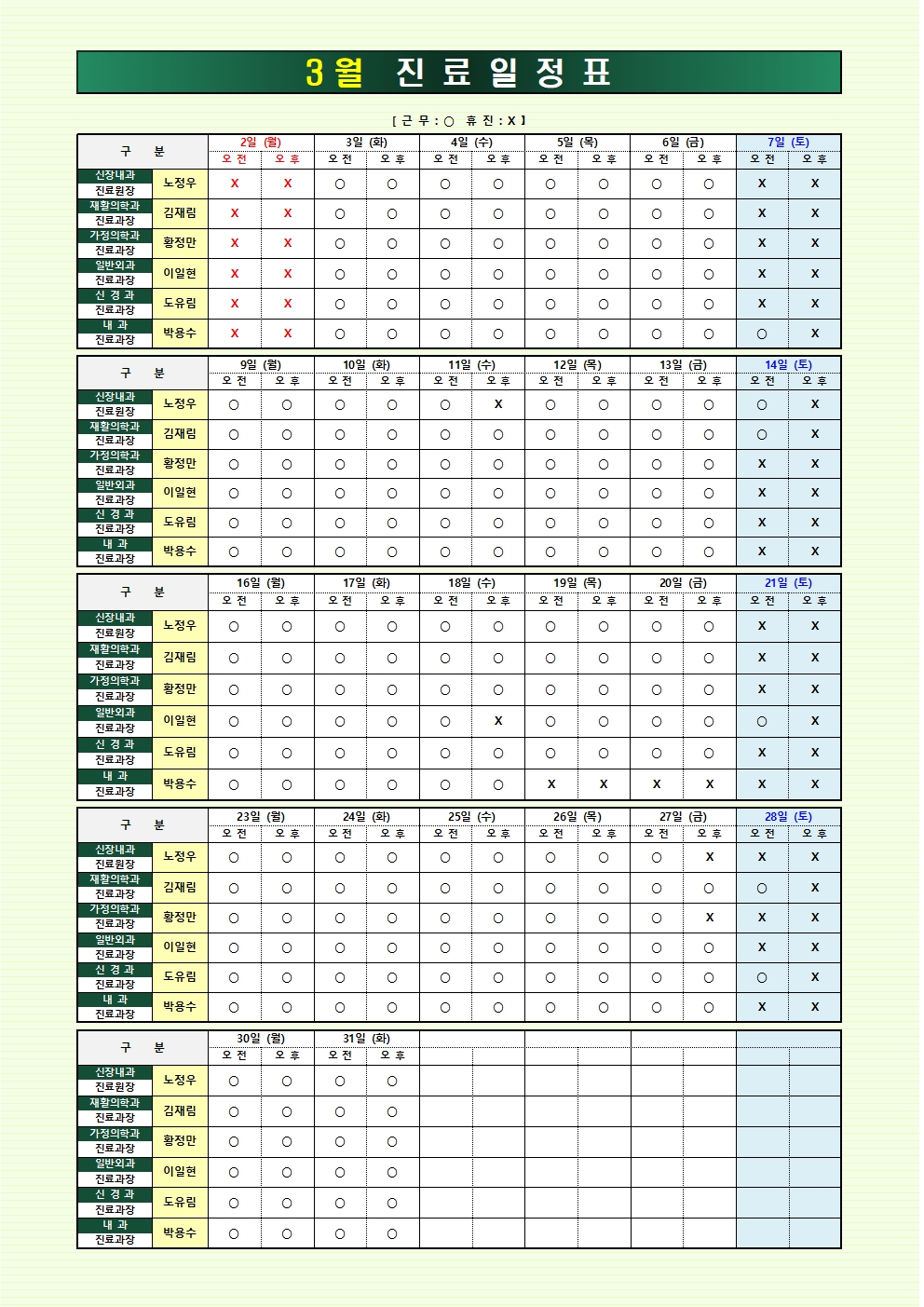 제목: 2026년 03월 진료시간표