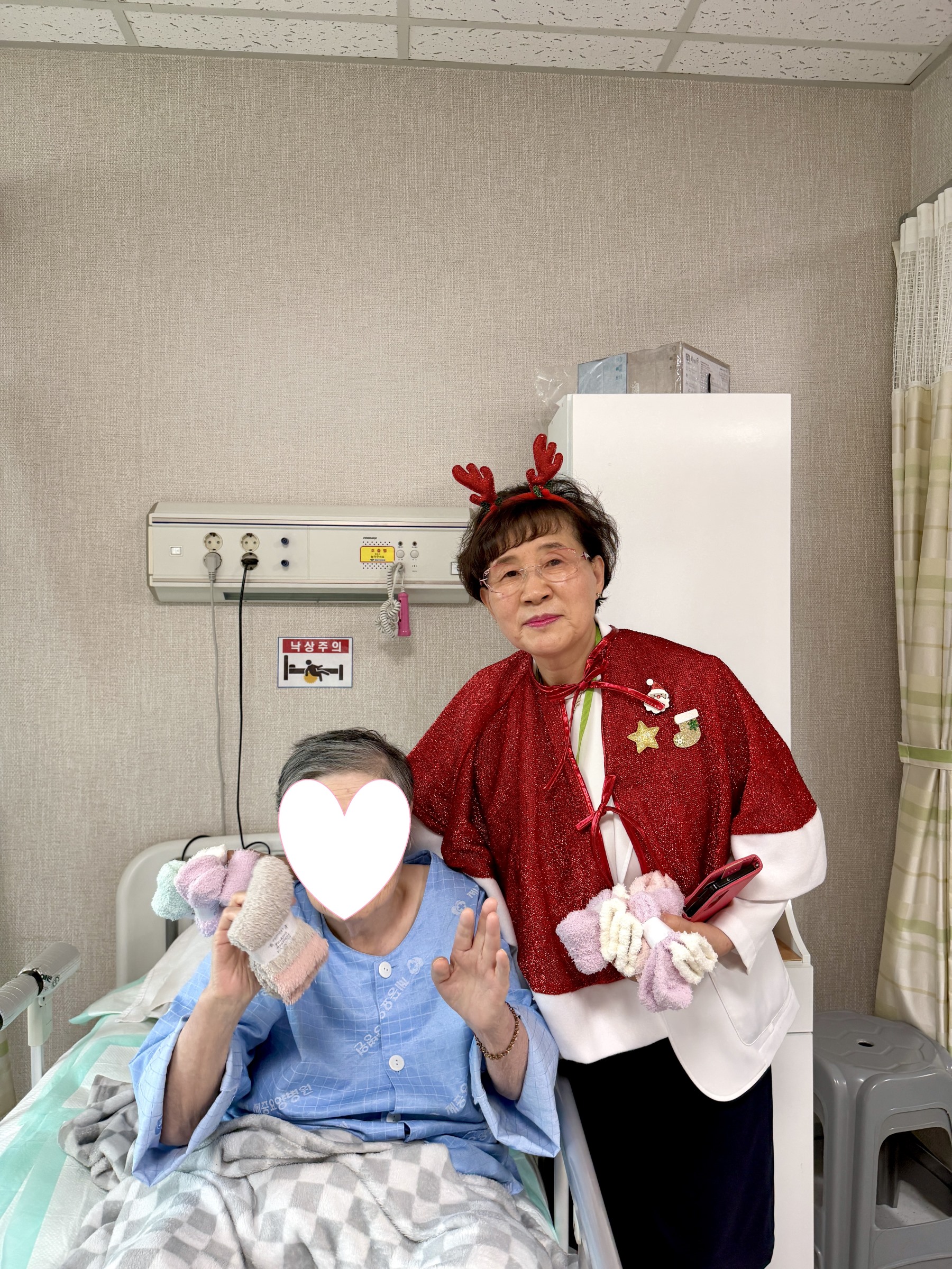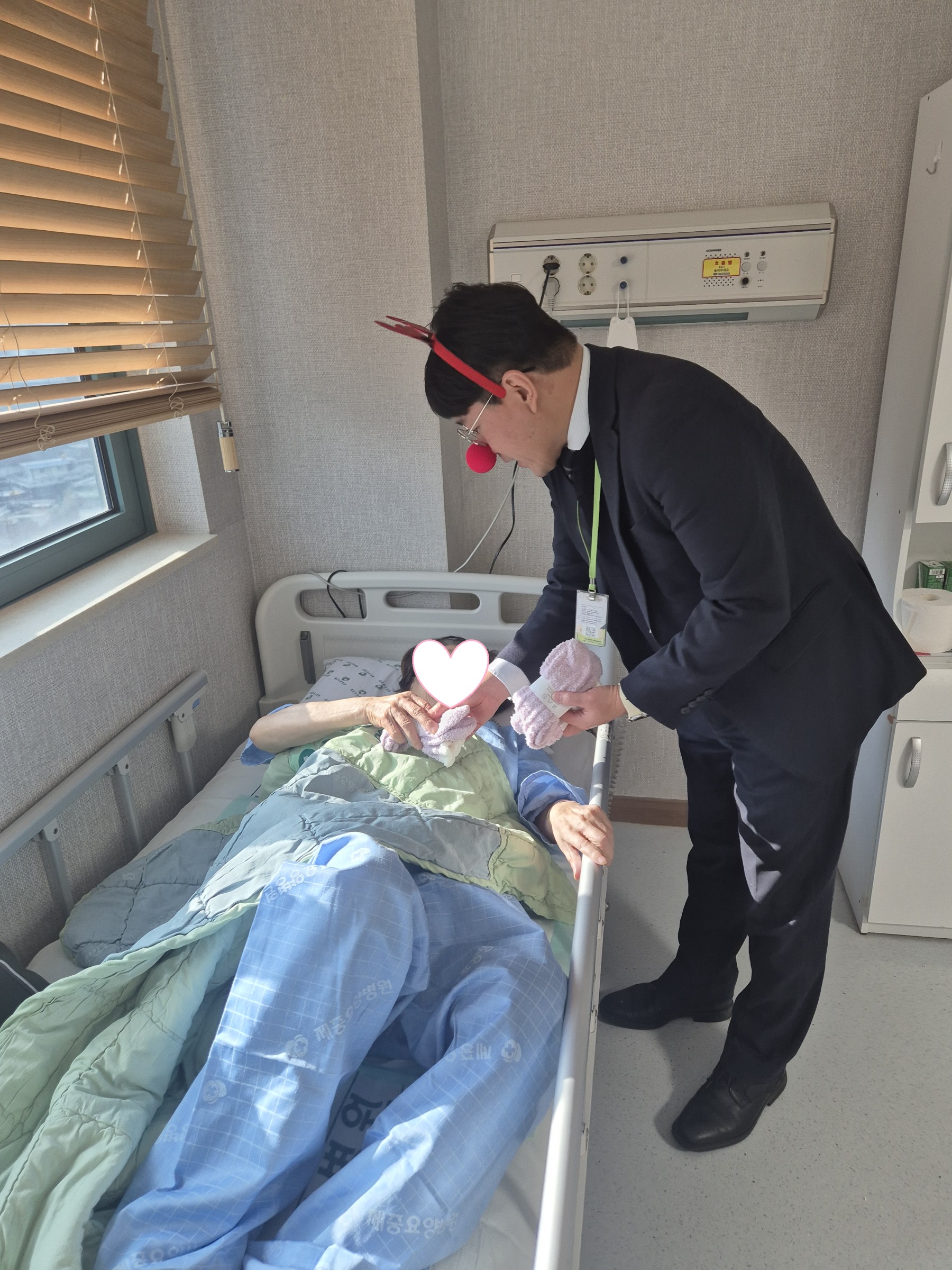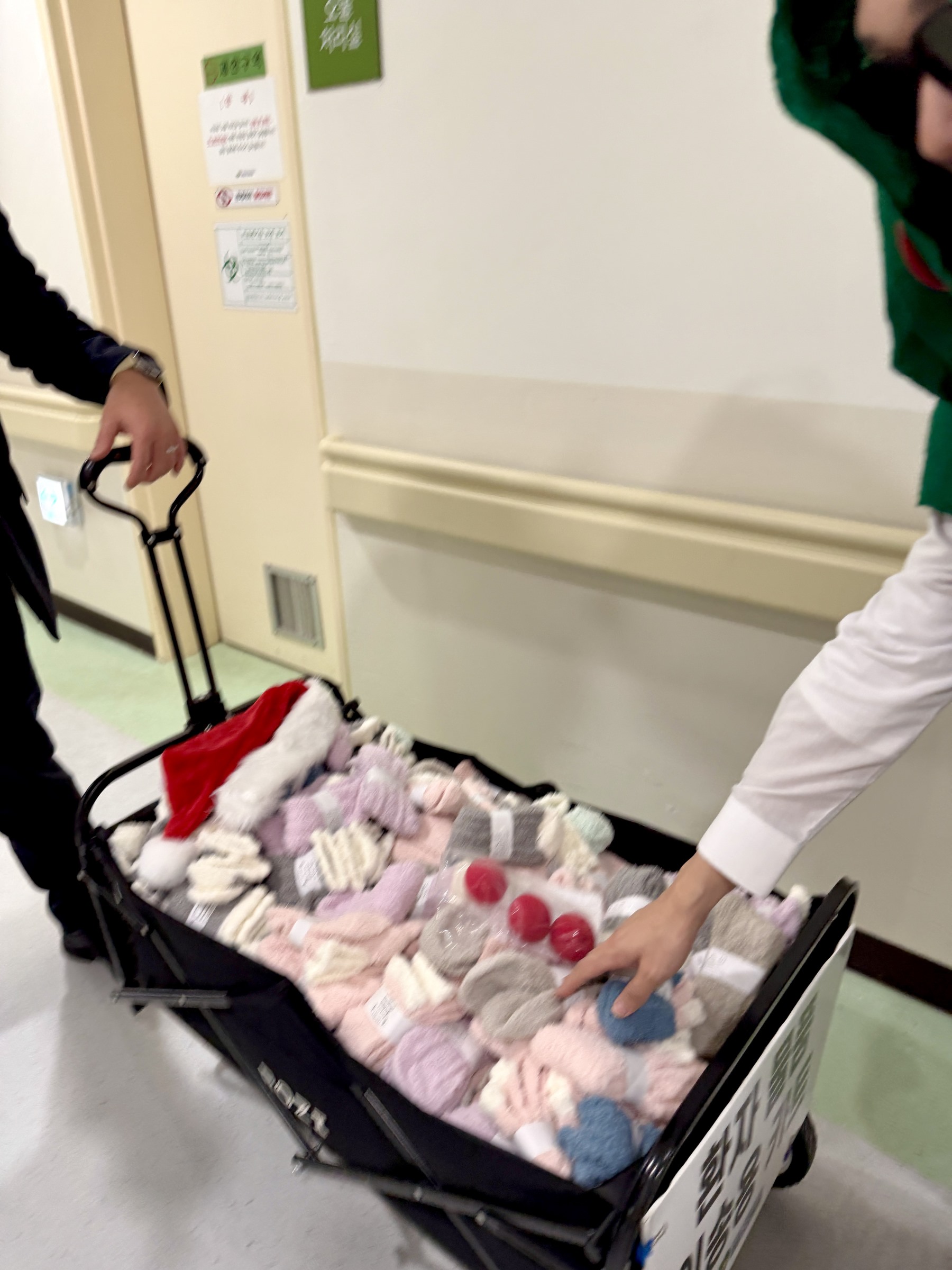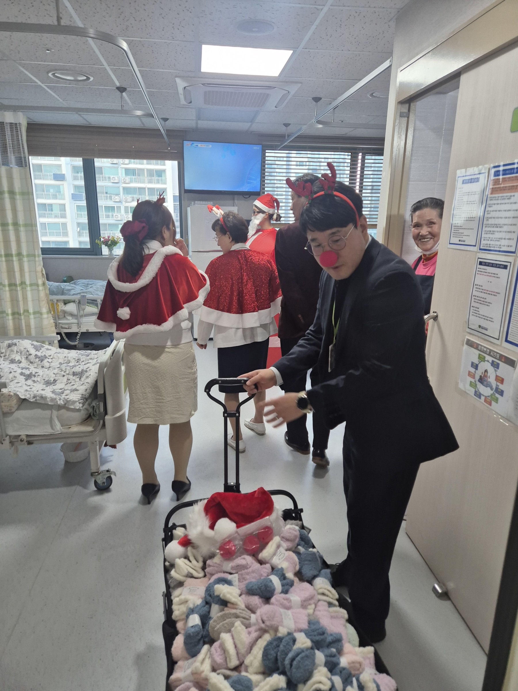 전 병동을 돌면서 선물(양말)을 드렸는데요~~